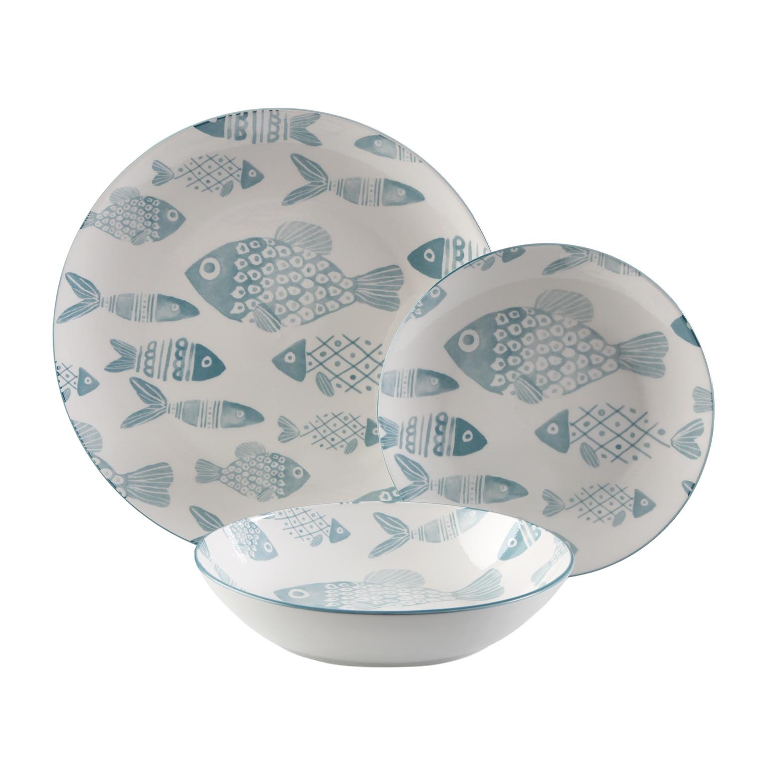 O serviço de mesa 18 peças peixes azul é uma escolha encantadora para qualquer espaço do lar.