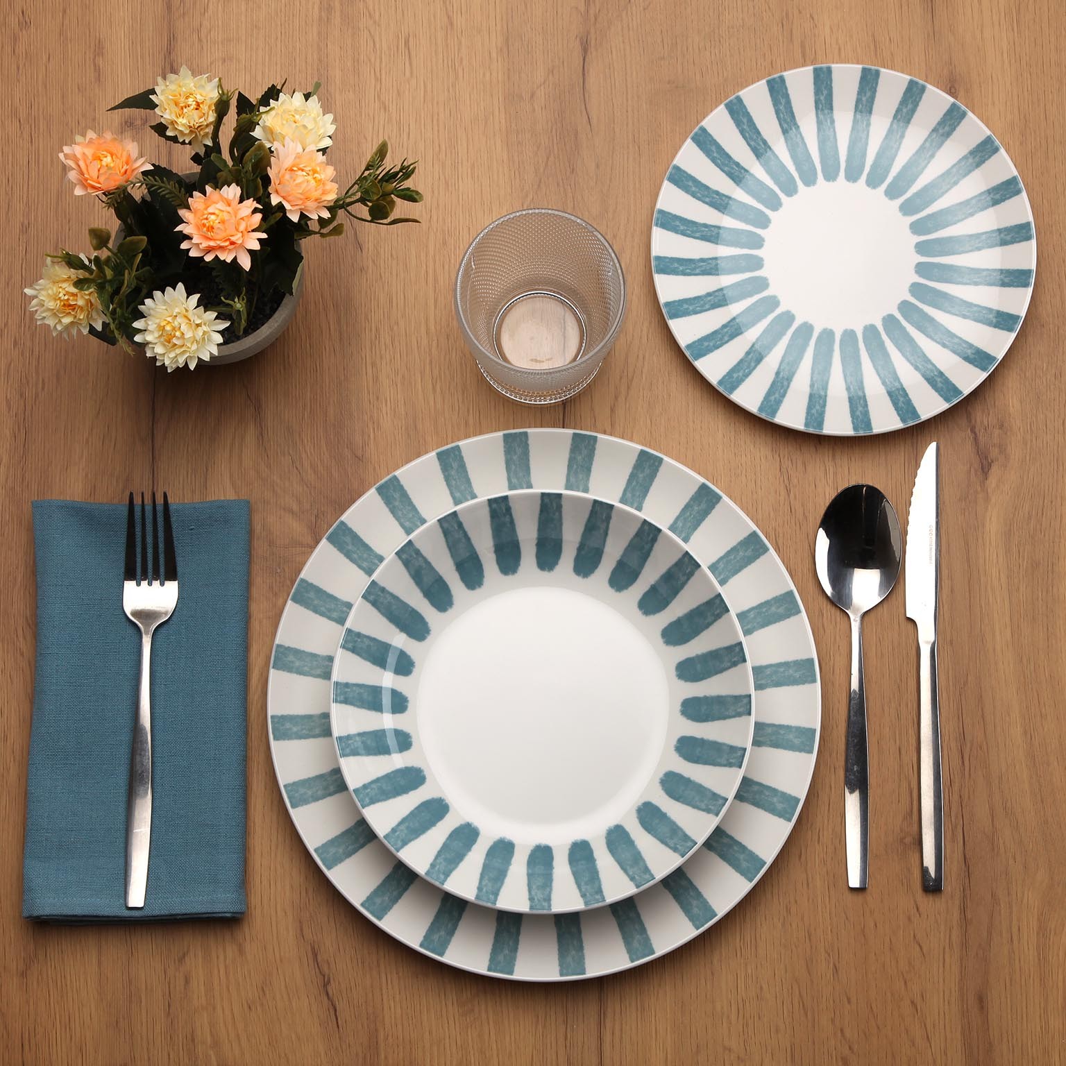 O serviço de mesa de 18 peças Jungle Azul é uma escolha sofisticada para qualquer espaço do lar.