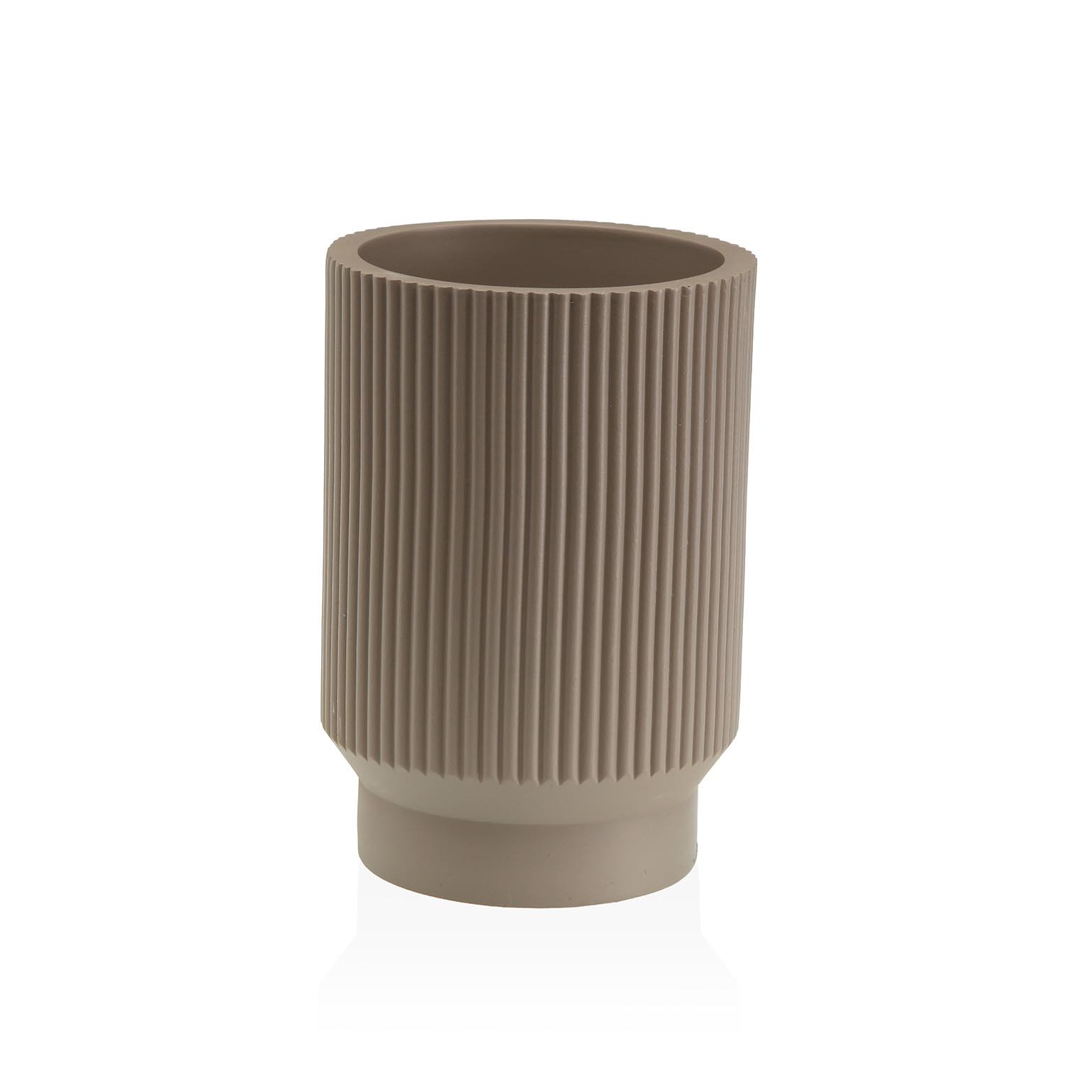 O porta-escovas laisa cinza é um acessório funcional e elegante para a casa de banho, confeccionado em resina.