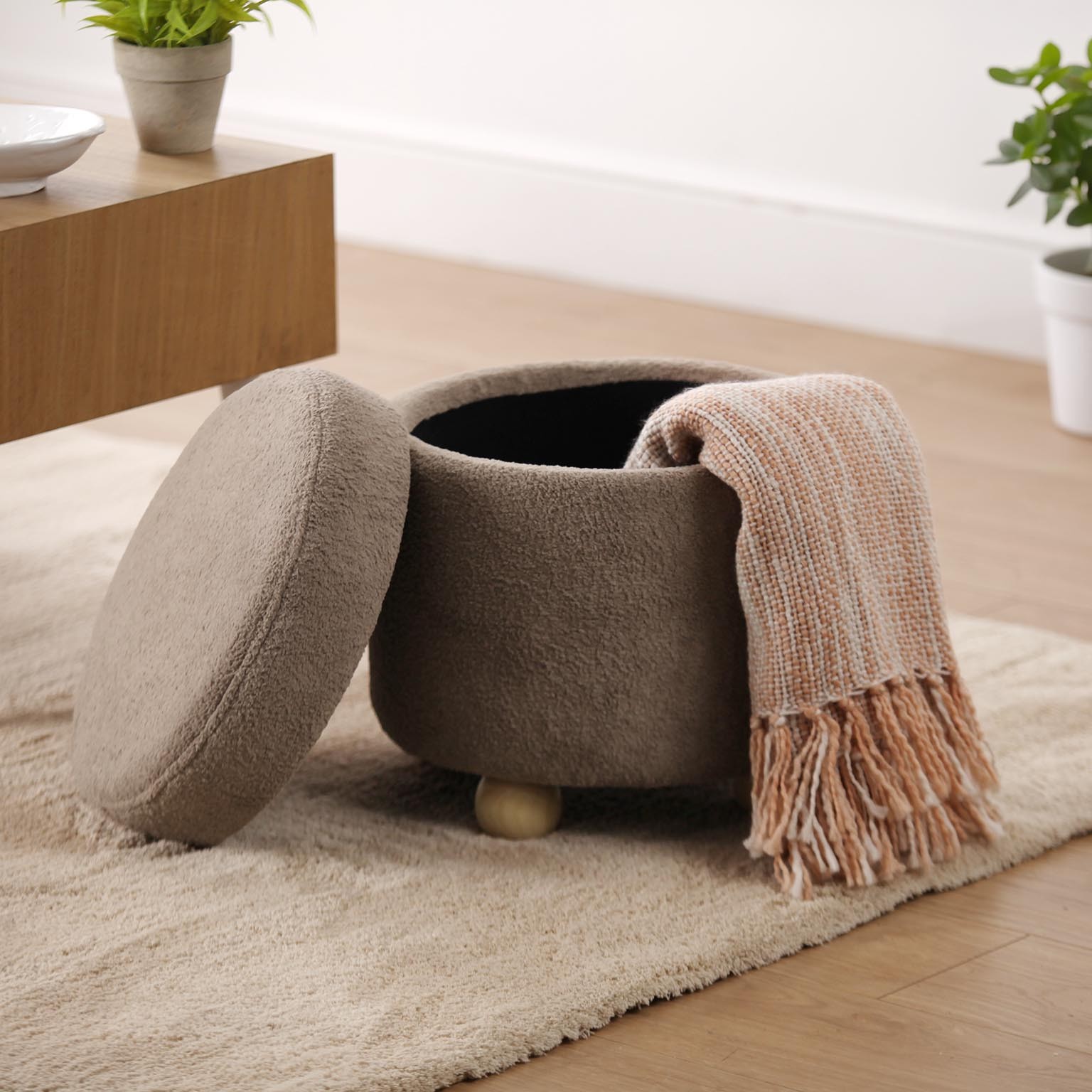 O pufe com arrumação castanho claro Lira é um móvel auxiliar versátil, ideal para otimizar espaços no lar.