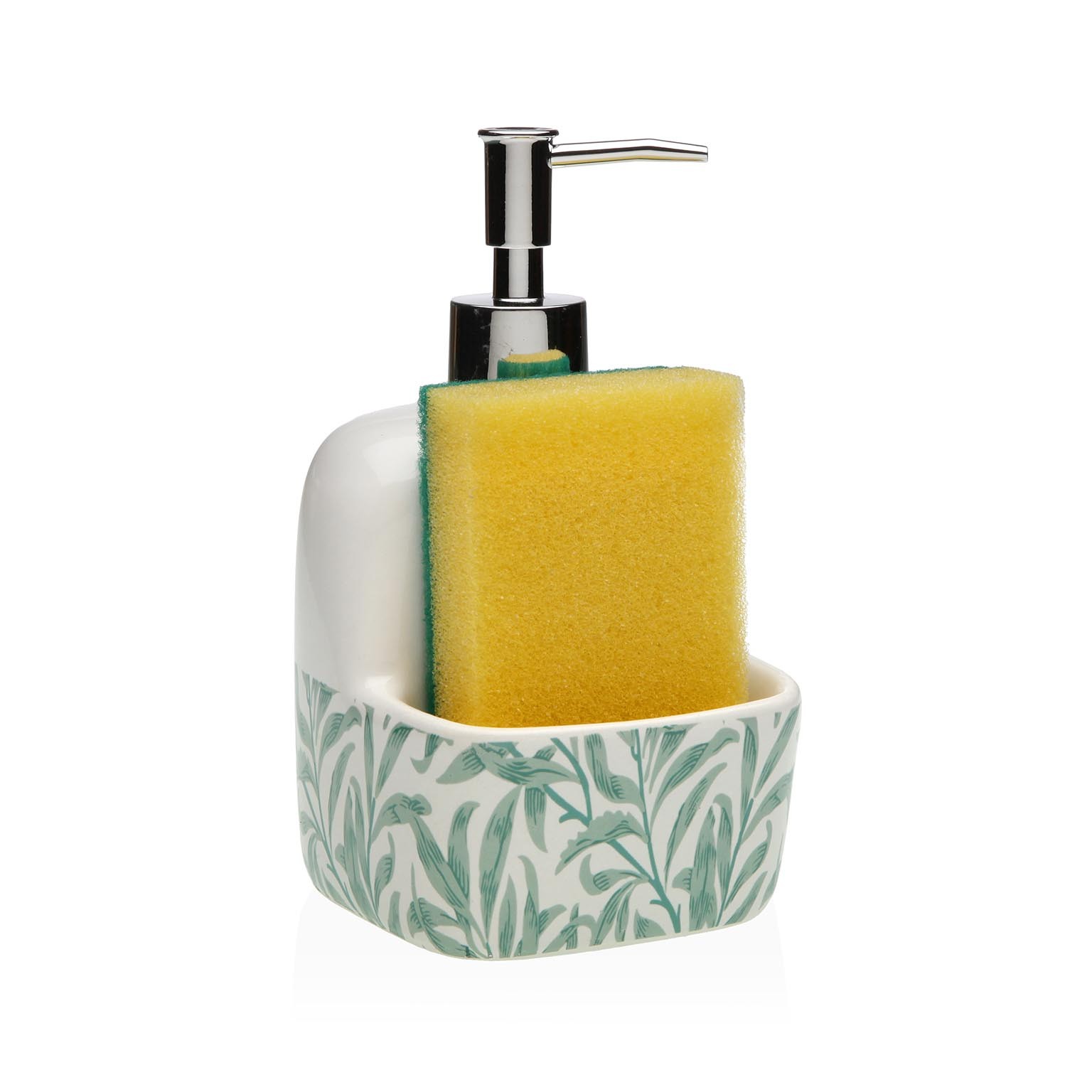 Com um corpo em cerâmica branca e detalhes em verde que evocam um estilo moderno e natural, este dispensador tem 17,8 cm de altura, 9,4 cm de largura e 10,5 cm de comprimento.