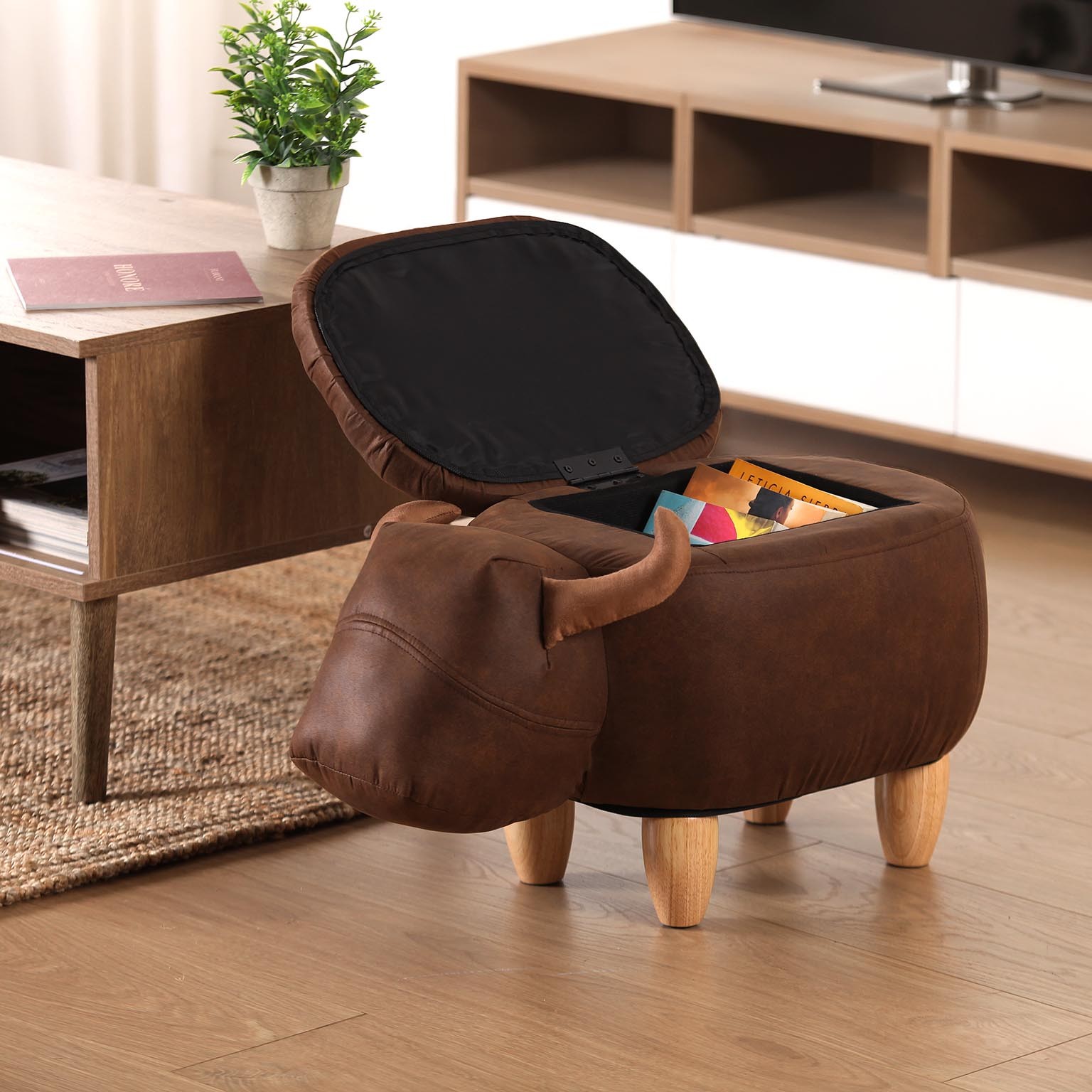 O pufe touro é uma peça decorativa e funcional que combina estilo rústico e versatilidade.